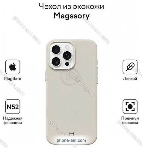 Чехол для телефона Magssory Eco Leather Case Ivory для iPhone 16 Pro Max CLT029i купить недорого в Ереване: интернет-магазин с бесплатной доставкой по Армении